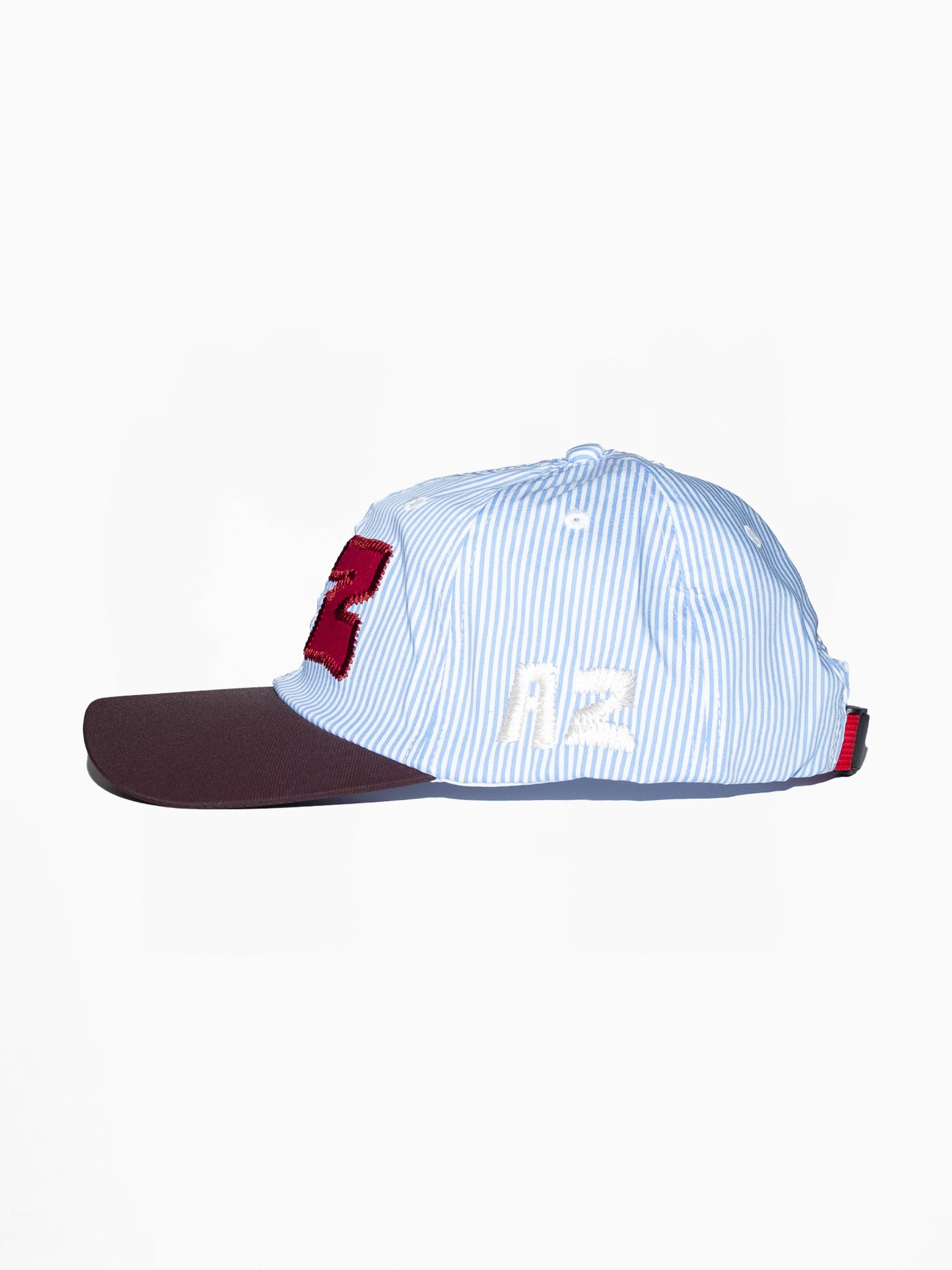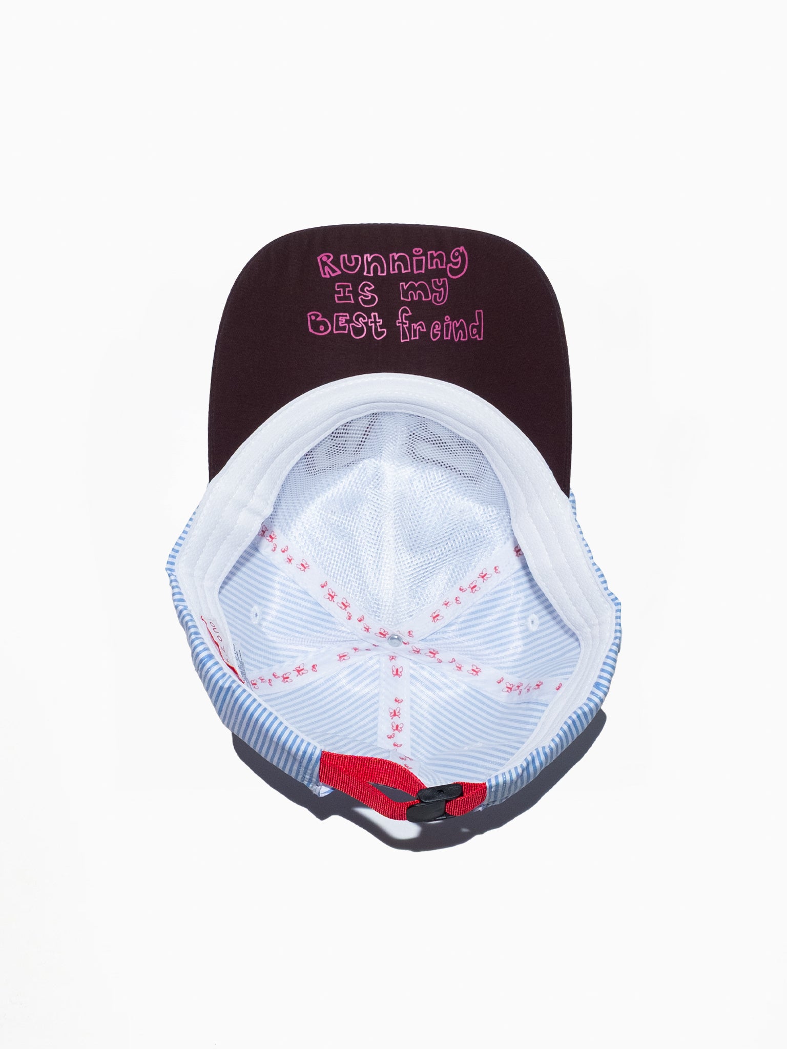Our good friend Alex Zono is back with his infamous running caps. Styled on a classic baseball cap, with heritage inspired blue pinstripe and embroidered 'AZ'. Branded touch points include side 'AZ' and 'Cape Town' details on either side, 'running is my best friend' print underneath the peak as well as a butterfly detailing on the interior binding.