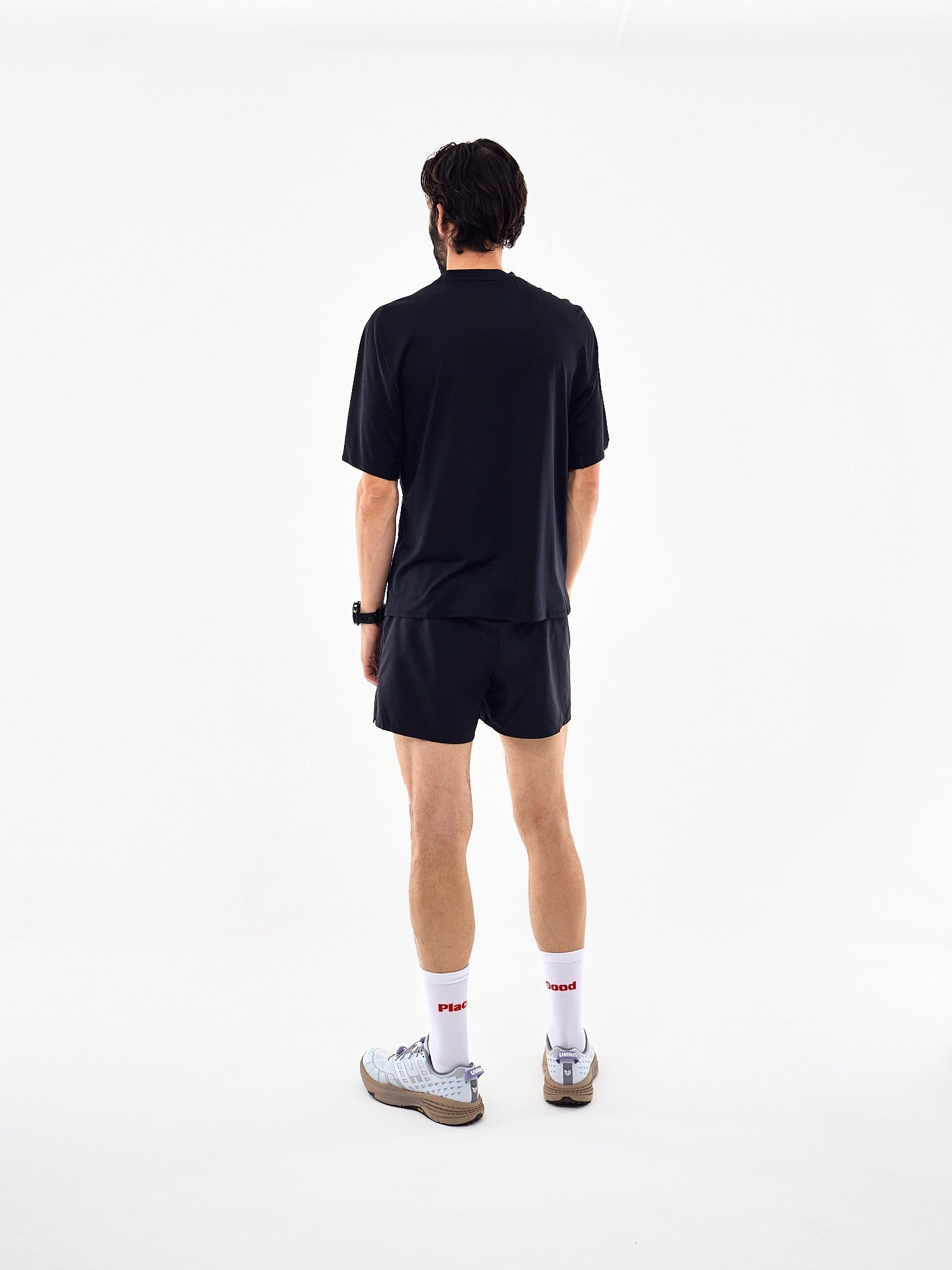 This technical long sleeve T-Shirt from Portal can be worn as either a base layer or as a standalone piece. It has a form fitting cut that crops in the body making it ergonomic for active movement. The fabric has a smooth but dry finish to it that sits comfortably next to the skin whilst the merrow stitch seams mean there is very little chance of chaffing or friction when worn.