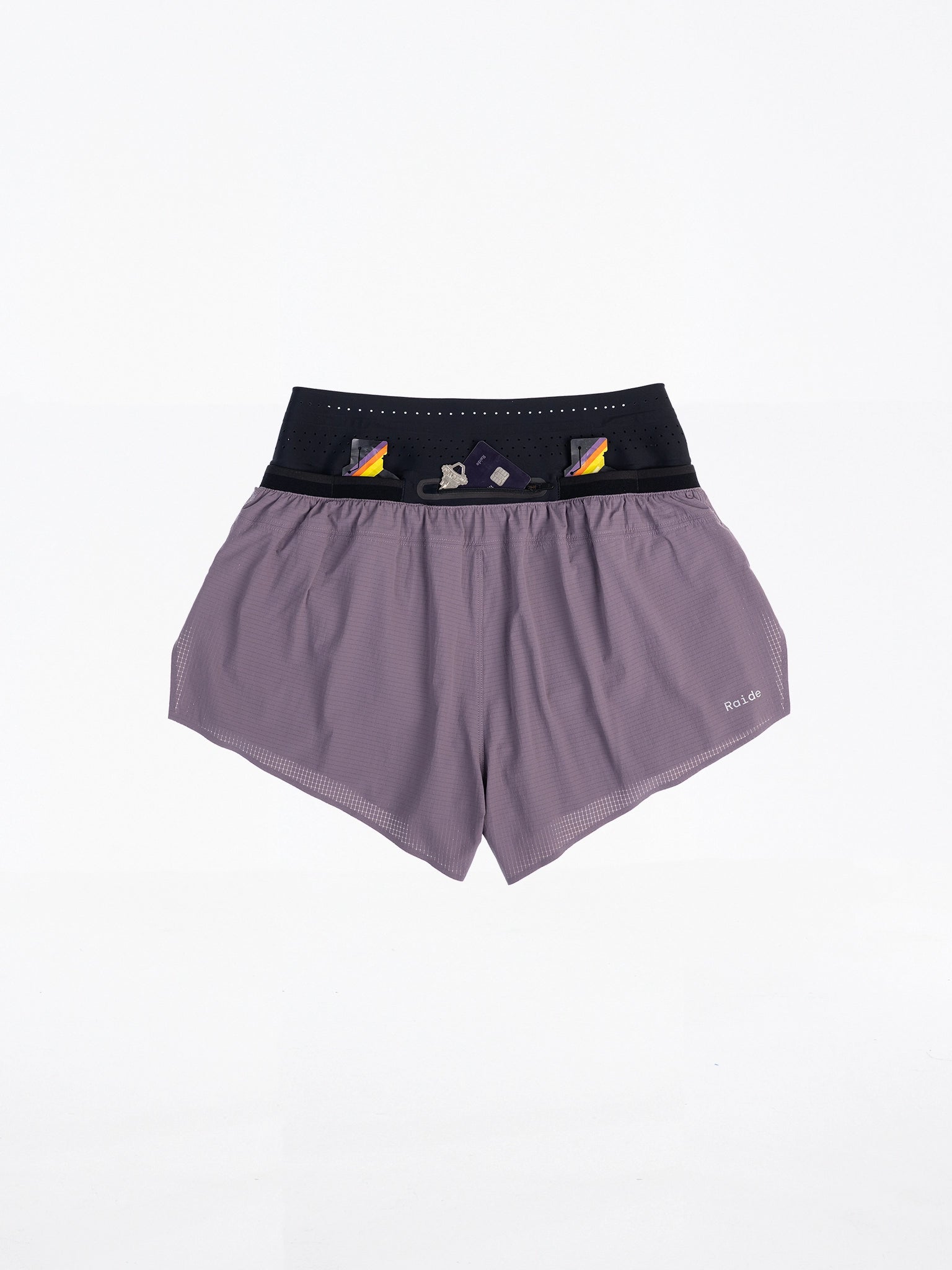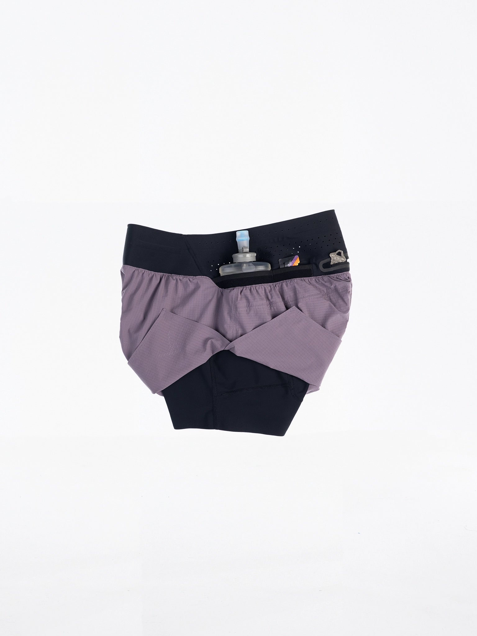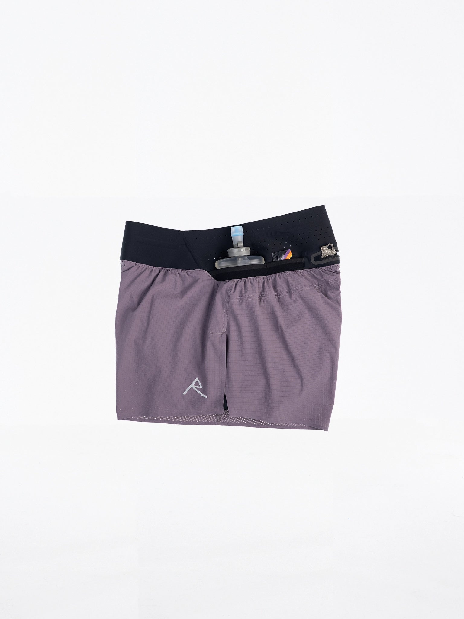 Raide Research is one of favourite new brands at Knees Up. Hailing from Colorado in the US. They focus on developing ergonomic and storage focussed products that both have incredible practical use but look fantastic. These TrailTech shorts have a unique storage system that utilises the under-liner where the pockets sit directly next to your skin, which reduces bounce and keeps your items secure. It comes with a 360ml Raide Hydrapak flask that is designed to fit neatly into one of the side pockets so you can access hydration whilst you run, without the need for a pack. This pocket is mirrored on the other leg and would be great for a phone or even another flask. On the back you have two smaller pockets that fit gels and finally a zipped pocket for important essentials you don't want to lose. The liner short beneath is slightly compressed and has rubber grippers on the leg opening that help to keep them in place.