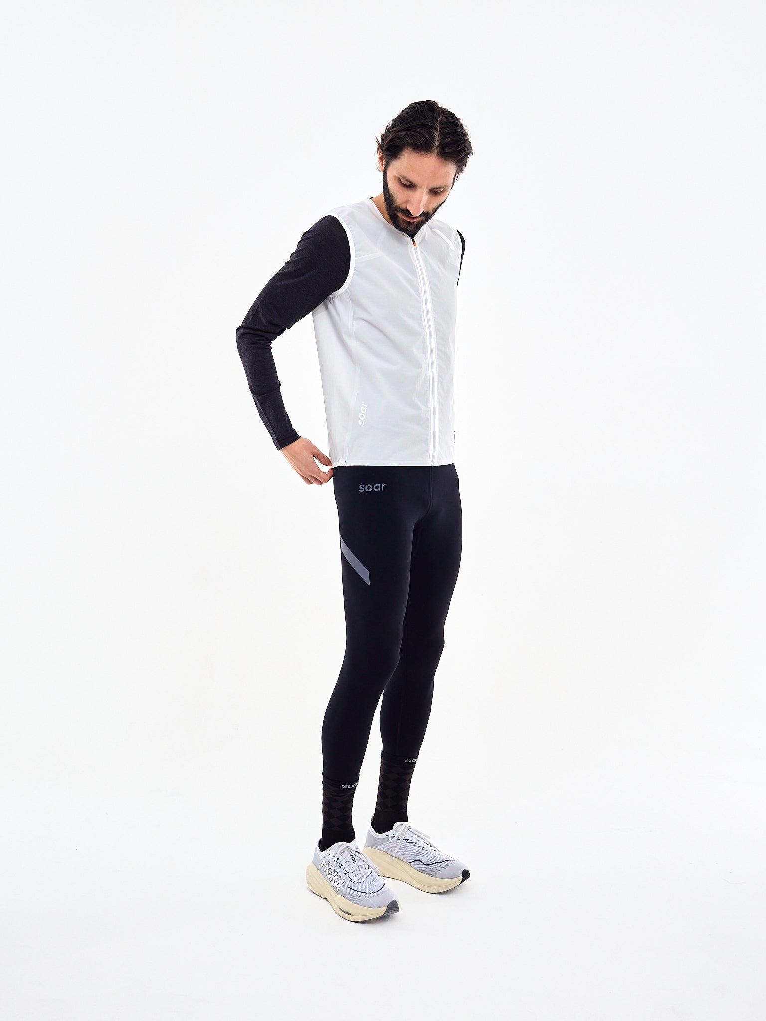 The Soar Rainout Vest is a brilliant mid-layer for the cold and wet runs when you need that extra protection and warmth. It has a water-repellent DWR finish on the front panel, which will keep you dry in most showers. Although not totally waterproof, the benefit is that you still get great breathability, which is important if you want to allow some of the heat to leave your body and not get trapped inside the jacket. The rear panel is a light weight, more breathable material that allows the body to regulate temperature.