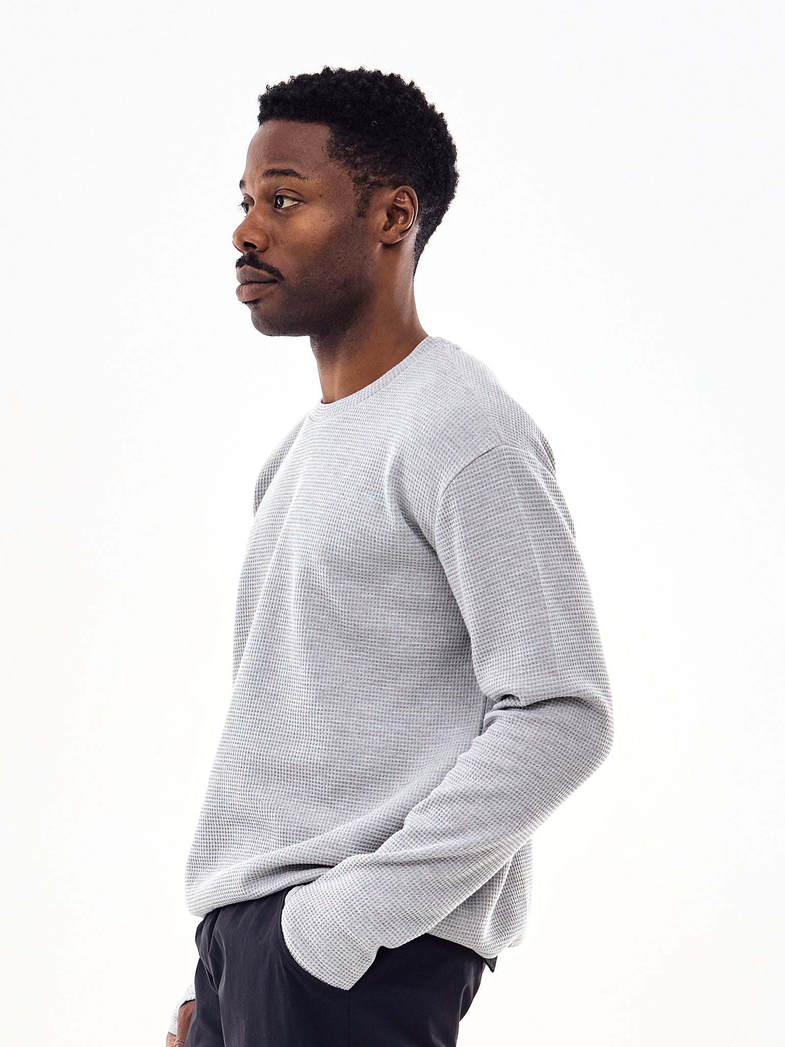 TIEMPOS Waffle Long Sleeve Grey